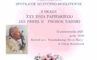 Zapraszamy w niedzielę 12 października 2025 r. na godz. 19:00 na wieczornicę – spotkanie muzyczno-modlitewne poświęcone św. Janowi Pawłowi II z okazji XXV Dnia Papieskiego. -